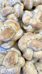 | Bland alt, juster med vann for god konsistens. Deigen skal være litt fast, men klissete. Dekk til og la heve i romtemperatur i 12 timer Når du skal bake rundstykkene ut kan det være greit å bruke to skjeer for å forme dem. Du kan også hvelve deigen ut på et bakeark med godt med mel, dele i mindre biter med en deigkutter/kniv og så forme dem forsiktig. Tenk på å ikke klemme ut luftboblene og tenk på å skape maks overflatespenning. Sett dem på bakepapir. Stek rundstykkene på 220 grader i ca 20 minutter. Bruk gjerne bakesteiner og forvarm ovnen godt. Som brød i form: 200 grader i 40 minutter. |